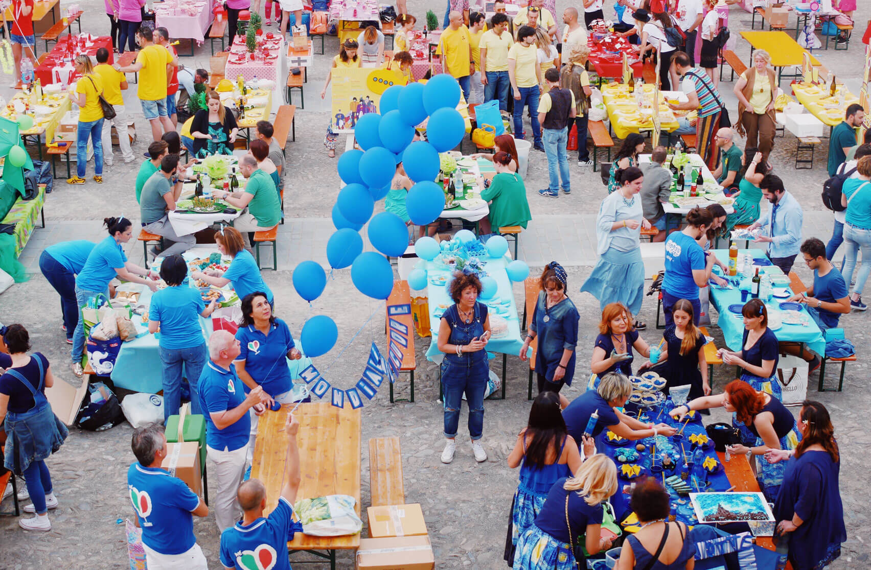 Sì, perché la modalità di partecipazione è la seguente: qualche settimana prima dell’evento, sul sito di “The sign of color” viene pubblicato un form che deve essere compilato con i dati del gruppo di amici (dalle 6 alle 8 persone) che intende partecipare. L’iscrizione è totalmente gratuita; a ogni gruppo iscritto viene assegnato un colore in base al quale dovrà organizzarsi per preparare cibo, tovaglie, piatti, bicchieri e decorazioni in tinta! Le tavole decretate le più belle per allestimento, cibo e abbigliamento vincono alcuni simpatici premi.