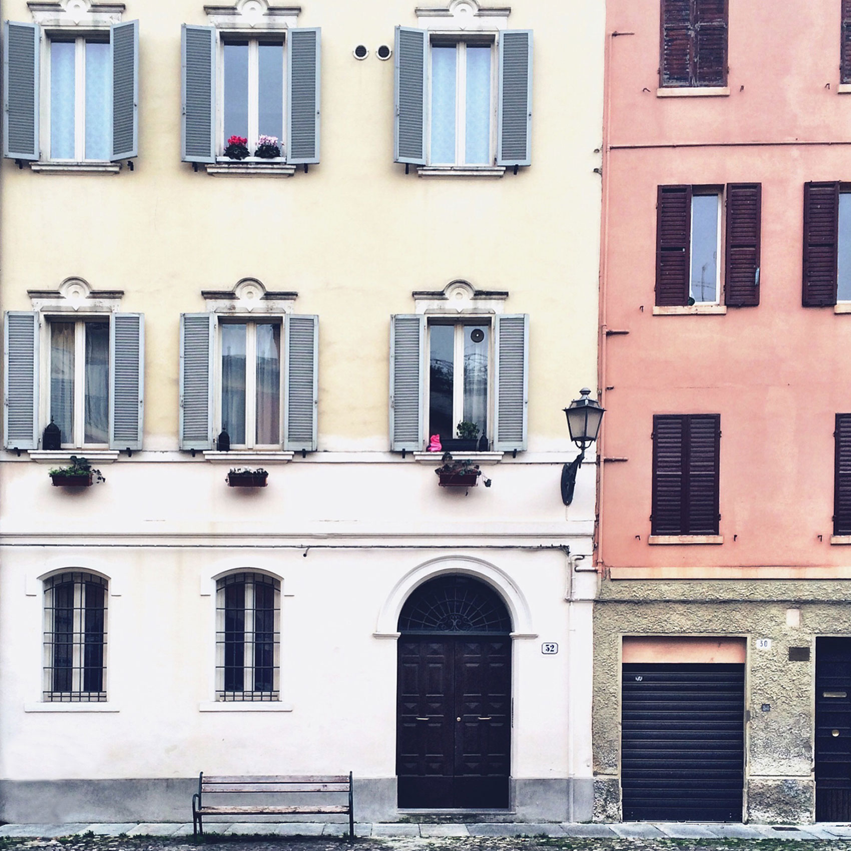 Guardo alla mia sinistra all’interno del giardinetto della chiesa fino a scorgere il portone di accesso della casa del grande Ludovico Antonio Muratori, il grande letterato che visse tra il ‘600 e il ‘700, e guardo alla mia destra verso la splendida casa al civico 40, Casa Tassoni, dal romantico terrazzo su cui fanno bella mostra di sé rari alberi di vite, un esempio molto suggestivo di abitazione modenese del rinascimento.